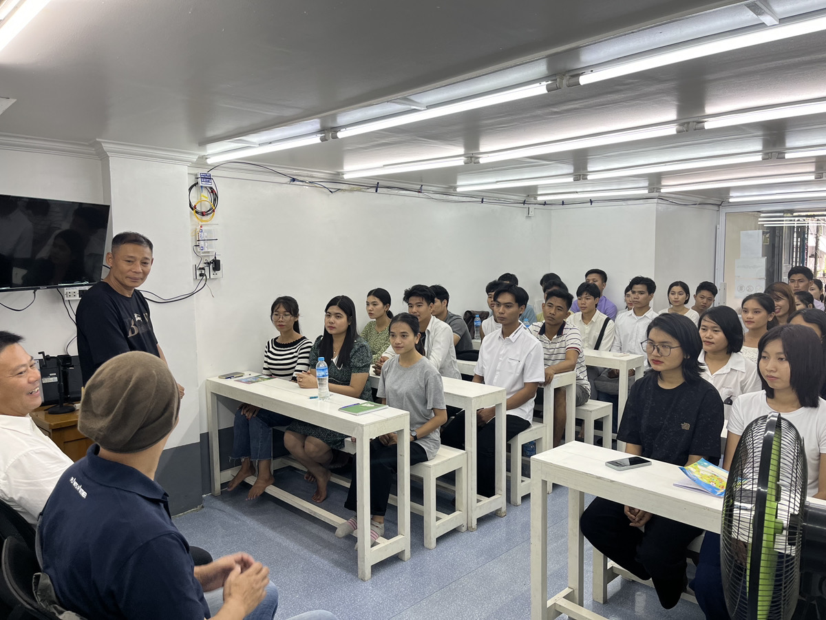 ミャンマー・ラオス政府認定の学校を自社で運営。技術だけでなく、日本の文化やビジネスマナーまで徹底的に教育します。